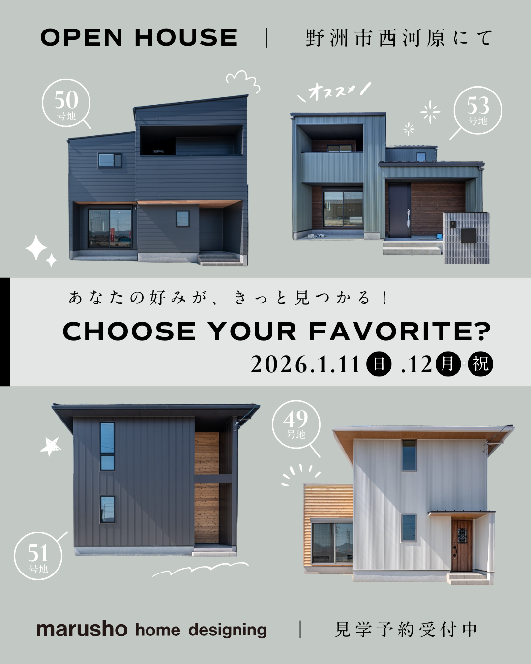 4棟同時オープンハウス開催!!「価格改定&即入居可能」1月11(日)・12(祝・月)